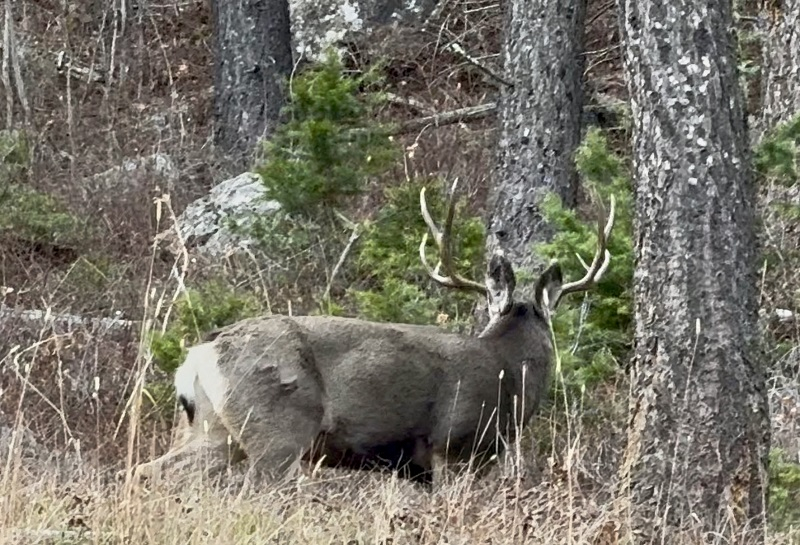 We saw the Northern Lights last week. Also, we set a new tower blind on the mountain that should be a dynamite spot for elk and mule deer hunting. A few bulls have been shot in the area without the blind and 2 of the mule deer pictured walked by it last week.