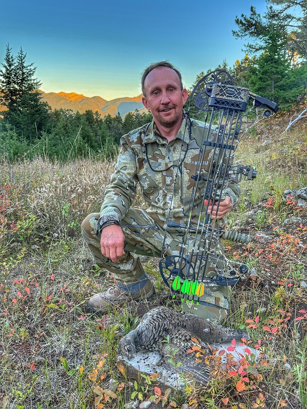 The first days hunt from this week was a barn burner! I had 2 elk hunters standing in the dark listening for bugles with me on Sunday morning. After 15 minutes we didn't hear anything close so I went to the old faithful and figured if they're not talking I'll split up and place one guy in a natural travel cooridor in a natural blind I built a few years ago. As I settled him into the blind and gave him a breifing on what might happen, that's when things got interesting. A bull fired off straight below us a few hundred yards. I grabbed the other hunter and took off to the North towards where we where going to set up to try and get our scent stream away from this guys set up that was blowing down towards the bugle. We only made it about 200 yards and bumped some cows coming up right below us. When they took off, 2 bulls screamed just below them. I picked out a spot for the hunter with me where he could shoot left and right on the hillside and ran up the hill to start calling. Once I got settled in I started with a few cow calls and they answered right away. 5 minutes later they where right below us but started to circle to the South. I took a elk shed and started thrashing a tree, the bulls ratteled off some more bugles in our face, they where starting to get worked up! I moved quickly further away and repeated the cow calls and raking another tree and added a bugle of my own. The intensity in their bugles really amped up, one started raking a tree of his own and the other was closing but working higher. I moved one more time away and again thrashed a pine tree and gave a few cow calls followed by another bugle. This time the top bull Hammered back at me and sarted running in. At the time I didn't know it but the bowhunter had a smaller bull standing at 7 yards looking in my direction. I heard the big bull coming and hunkered down in a pine to hide so he didn't see me. Next thing i heard was a bow going off and a solid hit and a run away train crashing across the hillside mowing down everything in it's path. The bull gave the hunter a broadside 27-28 yard shot slightly above him on the hillside.
